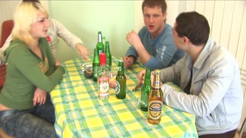 Несколько парней решили напоить слабую на передок суку, которая всегда готова трахнуться сразу с несколькими парнями.Оказалось, что не так просто споить опытную алкашку, которая поглощает алкоголь литрами и находится полностью в трезвом состоянии. Самцам приходится очень постараться и телочка тут же решает наградить их хорошим сексом, раздеваясь и показывая сиськи.