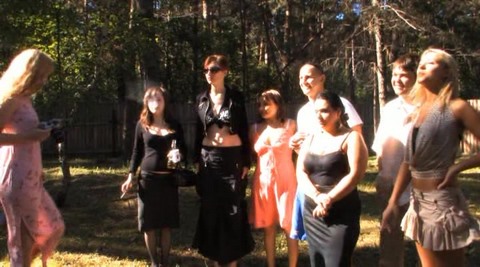 Приехав отдыхать на природу, большая и дружная компания подумывала о том, чтобы жарить шашлыки и мило общаться на разные темы. Но очень быстро каждому, без исключения, присутствовавшему стало ясно, что без секса эта сходка просто не закончится. Решив не ходить долго вокруг да около, они принялись жарко сношаться прямо на улице, наслаждаясь своей страстью и свежим воздухом. Девки отсасывали члены каждому желающему, да так, что только слюни летели, а после этого - пришло время и отдаваться.