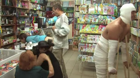 Зрелый мужик ходит между прилавками магазина и подсматривает за одной женщиной в возрасте. Бабенка сильно его возбуждает и когда она тянется к верхней полке за чем-то мужик подходит сзади и начинает ее лапать. Баба оказалась не промах и замерла в таком положении - она давно не трахалась и вое не против случайного секса в общественно месте. Мужик полапал даму а после вдул ей между ляжек, за этим сексом мило наблюдает еще одна женщина в возрасте, которая потом сменяет эту телку и становится сама раком.