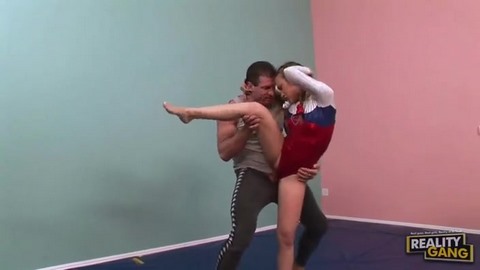 Молоденькая русская гимнастка отдалась стоя взрослому тренеру