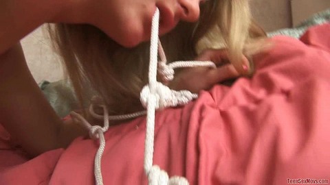 Раскрепощенная длинноволосая блондинка захотела испытать новые сексуальные удовольствия и приготовила веревку, попросив кавалера доставить ей огромное наслаждение с использованием бондажа. Паренек стал нежно связывать русскую развратницу и дал ей пососать свой член. Возбудившись от новых ощущений, цыпочка жадно отсосала твердый хрен и подставила истекающую пилотку. Ухажер активно отпердолил сексуальную красотку и, почувствовав близость финала, полдрочил в открытый ротик подружки, напоив ее спермой.