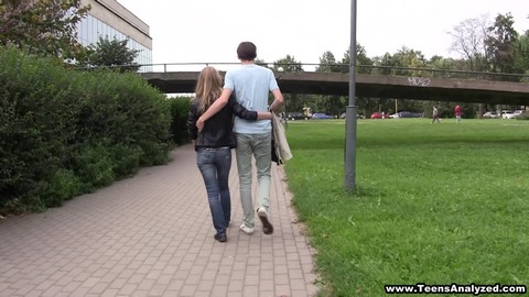 Парнишка на улице познакомился с привлекательной телкой и, после прогулки на свежем воздухе, привел девку домой и предложил заняться нежным сексом. Подтверждая правдивость своих слов, умелый русский кавалер немного обнажил новую знакомую и, приблизившись к пизде, порадовал новую знакомую восхитительным кунилингусом. Девка обалдела от ласки и сама с наслаждением отсосала пенис умелому кавалеру. Поставив белокурую партнершу раком, парнишка без раздумий вдул ей в задницу и выебал в анальное отверстие.