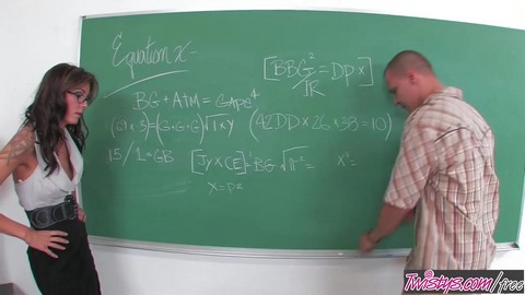 Сексапильная училка с татуировками оставила после уроков бритого самца, постоянно пялящегося на нее и решила отдаться своему озабоченному студенту. Паренек обалдел от возможности перепихнуться с опытной дамой и решил ей показать все свои способности. Посадив преподавательницу на стол, ловелас приник к ее пилотке и качественно вылизал. Даме понравились оральные ласки паренька и, немного пососав его стоячий фаллос, развратная бабенка отдалась чуваку прямо на своем рабочем столе и получила нереальное удовольствие от траха с молодым любовником.