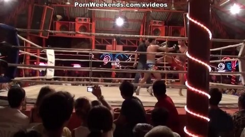 Парочка сидит среди зрителей и смотрит на поединок тайских боксеров, снимая все происходящее. Утомившись за день, девушка предлагает парню вернуться в номер и хорошенечко заняться любовью. Там малышка сразу же раздевается, оставшись в розовых трусиках и приступает к хорошему минету. Возбудив любовника до предела, красавица начинает насаживаться на длинный хуй паренька, яростно работая бедрами. Самцу нравится такая активность партнерши в постели и потому руками он ласкает все тело сучки, готовясь мощно кончить.