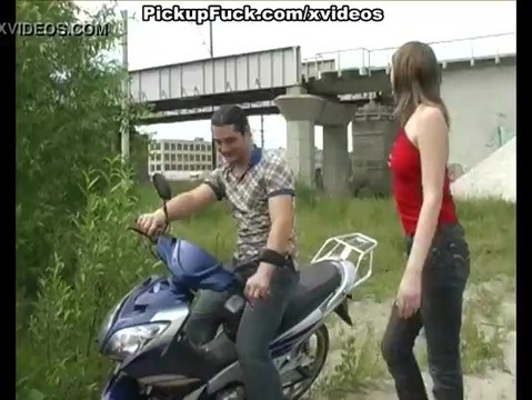 Длинноволосый кобель нашел на улице простушку, которая согласилась покататься на его мотоцикле. Он возил ее по городу, а затем свернул под мост и они оказались в такой местности, где их точно никто не заметил бы. Пикапер уговорил девчонку сделать ему минет, за то что он прокатил ее на мотоцикле. Куколка опустилась на корточки и взяла в рот член незнакомца, чтобы сделать ему хороший минет. Она умело работала губками и язычком, оглядываясь по сторонам, пока брюнет не спустил сперму.