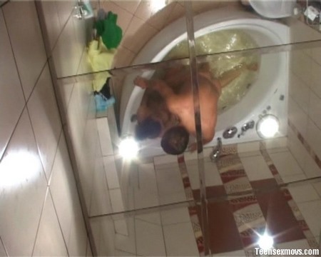 Очаровательная парочка голубков плещется голышом в шикарной ванной и страстно ласкают друг дружку, доводя до изнеможения потрясающими прикосновениями. Парнишка проворно исследует все закуточки вагины, дразня ее своими пальцами. Затем замечательная брюнетка, встав на колени отсосала хуй. Она энергично развлекла его язычком, основательно поработала губками, добравшись до самых яичек. Теперь сучка нагнулась и подставила свою изящную попку под член, стремительно вонзившийся в ее разгоряченную ласками плоть.