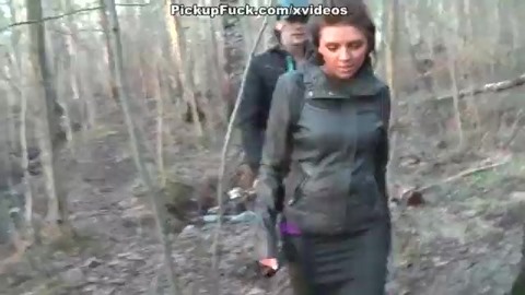 Парни прогуливались по лесу и совершенно случайно встретили симпатичную девушку, с которой легко удалось наладить контакт. Грудастую красотку зовут Татьяна, и она с радостью пошла с незнакомыми парнями в лес потрахаться, не смущаясь видеосъемки. Они заходят поглубже в лес и там телка показывает парням сисечки и даже дает их потрогать. После этого она сосет одному парню и даже становится для него раком, разрешая себя поиметь как следует. Сучка очень горячая и обязательно доведет парня до оргазма.
