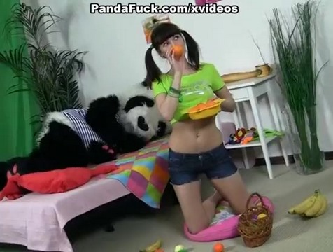 Молодая Юля заказала себе на День Рождения необычный подарок, который с удовольствием ей предоставил бойфренд. Он взял в аренду костюм панды и пришел к ней в гости. Пока милашка строила из себя детсадовскую невинность, он лежал на кровати и приделывал к костюму страпон. Обнаженная крошка поигралась со своими прелестями и присоединилась к парню в костюме панды. Она оседлала его сверху и чувак без проблем качественно выебал страпоном красавицу Юльку, как она и мечтала.