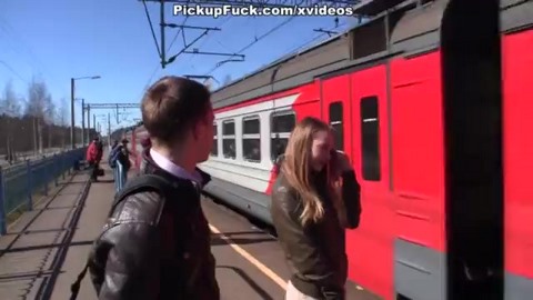 Парочка пикаперов подкатили к малышке прямо на железнодорожном вокзале и развели ее на секс за деньги. Пропустив свою электричку, девка пошла трахаться с двумя парнями в отеле вокзала. Номер был небольшой, но дивана посреди комнаты вполне хватало, чтобы заняться сексом втроем. После того, как чуваки раздели легкодоступную сучку, она встала раком и начала сосать член одного из них, пока второй в это время пристроился сзади и начал методично вгонять елдак в ее мокрую пизду.