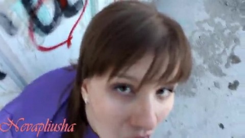 Блядь под мостом торгует своим пухлым телом и достаточно быстро находит клиента, который подкинул ей небольшую сумму. Он заказал минет и поэтому похотливая сучка становится перед ним на колени, достает его вялый хуй из штанов и начинает разминать его ручками. У шалавы это долго не получается, но в итоге член принимает боевое положение и шмара может теперь как следует его отсосать. Минетчица страстно прижимает фаллос губками и делает это настолько усердно, что вскоре наглотается горячей кончи.