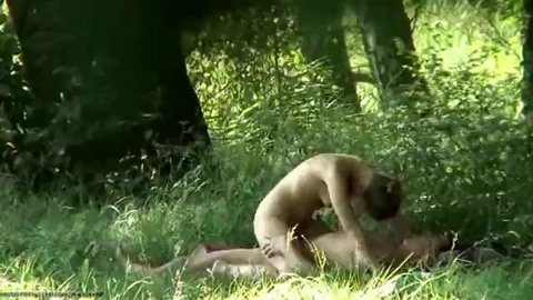 Пара жахается в лесу и не знает, что за ними подглядывают