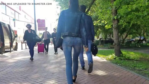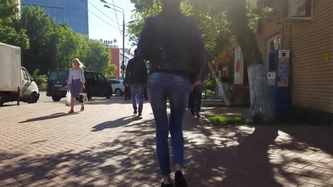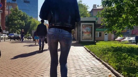 Паренек обожает гулять по городу. Он всегда находит для себя любимое развлечение - снимать на скрытую камеру задницы проходящих мимо девчонок. Сегодня ему приглянулась одна телочка в джинсовых облегающих штанах. Девчонка довольно худая, но тем не менее у нее замечательная фигура. Парень следует за телочкой везде и всюду, он не перестает снимать ее попку в обтягивающих джинсах и постепенно сам возбуждается от увиденного. А девчонка даже не подозревает, что за ней следят.