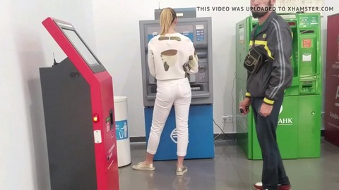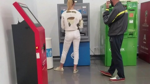 Фетишист бродит по городу и выискивает для своего домашнего видео сочные попки молодых телочек. ему сказочно повезло у банкомата - там стояла симпатичная стройная чикса в белых штанах, которые красиво облегали ее упругие ягодицы. Девчонка что-то пытается сделать банкомата и у нее не все получается, она злится и топает ножкой, а чувак самозабвенно снимает все ее действия на камеру. Самочка даже не догадывается что за ней так пристально наблюдают и тем более - снимают на камеру.