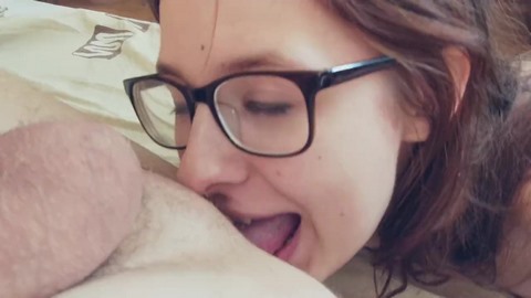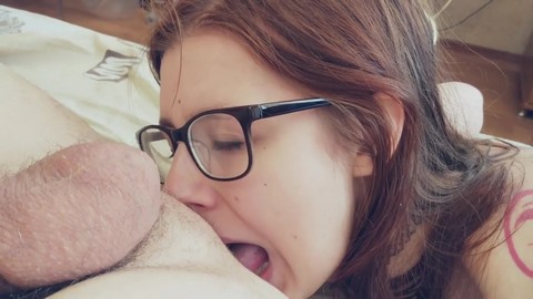 Хорошенькая русская студентка удобно устроилась между ног у своего парня и начала язычком ласкать его анус. Сделав ему анилингус, она переключилась на его твердый, как камень фаллос. Она медленно заглатывала его сантиметр за сантиметром, как удав глотает жертву, пока фаллос парня не исчез у нее в глотке. Придерживая девку за голову, парень еще сильнее вжимался членом ей в рот, а она терпела. Студентка в очках дала в попу бойфренду после горлового минета и тот с удовольствием насладился ее тесным очком.