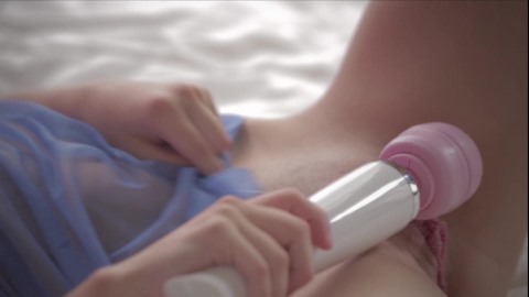 Озабоченная Лолита руками и вибратором драконит бритую пизду