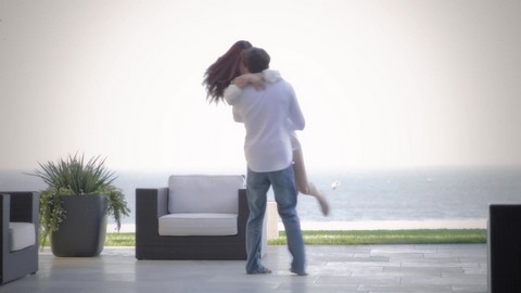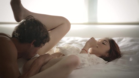 Соскучившись по своему возлюбленному, красивая малышка буквально набросилась на него и тот закружил ее. Возбужденный самец отнес девушку на руках в спальню и уложил на кровать, а сам быстро стащил с нее трусики и прильнул губами к ее писечке. Насладившись классным куннилингусом парня, брюнетка взяла в ротик его торчащий фаллос и как следует его пососала. Привлекательная девушка с маленькой грудью оседлала член парня сразу после минета и устроила на нем дикое родео.