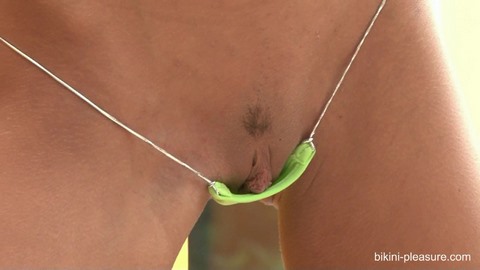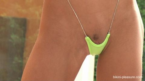 У этой хрупкой красивой девушки очень откровенное желтое бикини, которое она все равно снимет. Просто на просто замечательная блондинка хотела во всей красе продемонстрировать все свои интимные части тела. Более того, очаровательная милашка с очень маленькими сиськами хотела крупным планом показать розовую вагинальную дырку, в которую так и хочется вставить, сами понимаете что именно. Эта телка заслуживает качественной ебли, однозначно.
