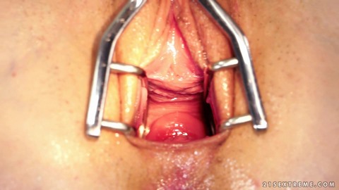 Шлюха раздрачила себе пизду огромным дилдо и расширителем