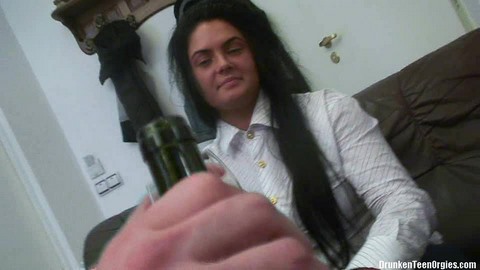 Милашка с красивыми дыньками прекрасно понимала, на что она идет, когда садилась бухать с двумя молодыми кобелями. Она сдалась раньше них, так что парни решили воспользоваться телкой для удовлетворения своей похоти. Раздев ее догола, они грубо тискали сиськи брюнетки и лапали ее между ног, а потом заставили отсосать у них. Два парня хорошенько трахнули пьяненькую русскую шлюшку на диване под аккомпанемент ее сладострастных стонов и пьяных выкриков.