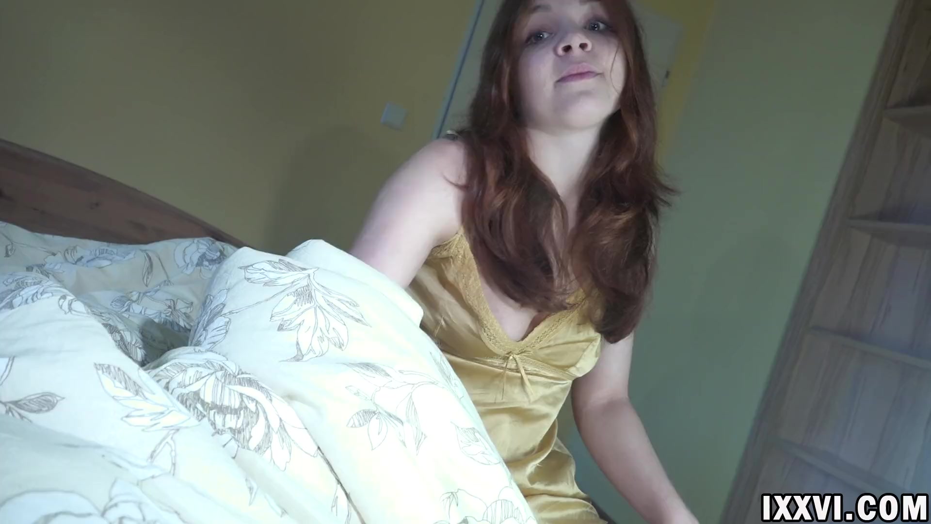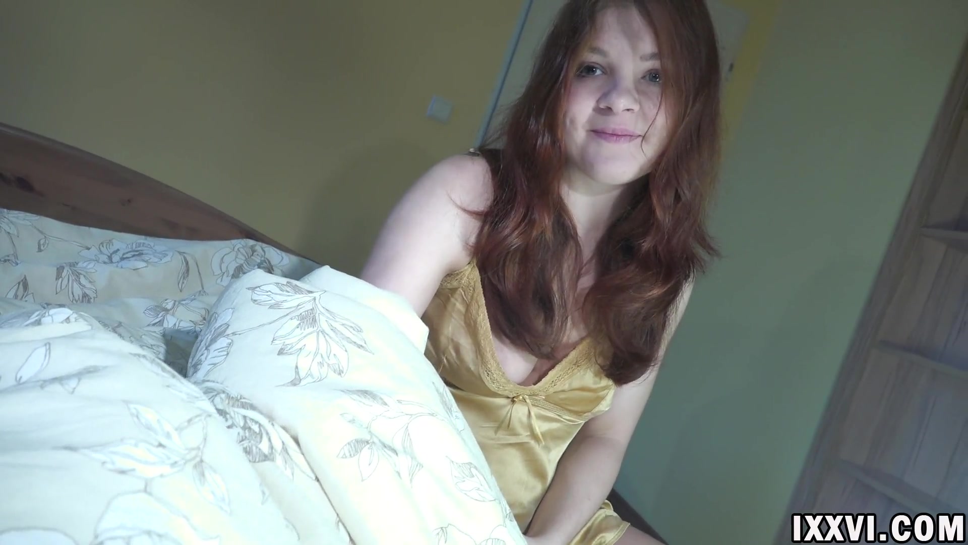 Красавица захотела хорошенько поебаться перед сном, поэтому быстро забежала в комнату к молодому человеку, пока он не уснул. Запрыгнув к нему в кровать, она стала ласкать его хуй через трусы и, добившись того, что он у него затвердел как камень, она стянула с него все, что на нем было одето и стала нежно сосать его упругий член. После сладкого минета малышка стянула с себя маечку, оголив шикарные сисечки с пирсингом на сосках, и позволила пареньку жестко выебать себя в пизду, кончив на спинку.