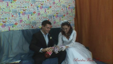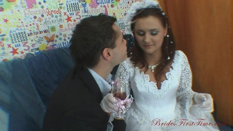 Молодая невеста с волосатой пиздой уселась со своим женихом на диванчик сразу после свадьбы. Они должны были пойти в свой номер в отеле, чтобы устроить первую брачную ночь, но решили, что им стоит еще немного выпить. Парень достал бутылочку вина и, дав своей малышке как следует напиться, стал ее раздевать и, приподняв подол ее платья, оголил ее волосатую пизду и как следует вылизал ее волосатую киску, после чего получил от нее шикарный минет и хорошенько отымел ее в попочку.