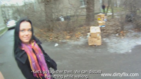 Парень прогуливался по своему двору и встретил на пути одинокую брюнеточку. Она показалась ему очень милой, поэтому он завязал с ней ненавязчивый разговор и смог ее заинтересовать. Еще немного с ней пообщавшись, он предложил ей сходить к нему в гости, чтобы попить чаю. Малышка довольно быстро согласилась на его предложение и, как только они пришли к нему в квартиру, то сразу отправились в спальню, где пикапер хорошенько выебал ее в пизденку, кончив после оргазма ей в ротик.