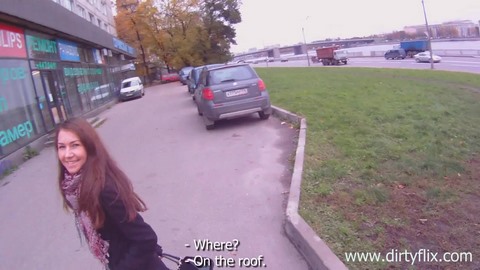 Пикапер трахает малышку в пальто на крыше дома