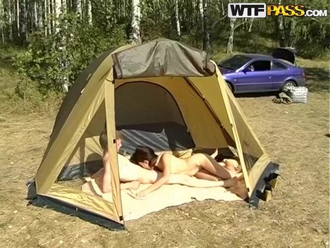 Раскрепощенные студенты устроили групповой секс в палатке в лесу