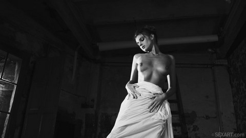 Молодая красотка клеила обои в своей новой квартире и после того, как устала, решила сходить в душ. После хорошего душа она вышла в комнату, накрытая одним лишь полотенцем и ей дико захотел подрочить. Не отказывая себе в этом удовольствии, она встала прямо посреди комнаты и, сбросив с себя полотенце, приступили к мастурбации. Нежно лаская свое тело руками, милашка постепенно перешла к дрочке своей пизды пальчиками и через несколько минут ей удалось довести себя до оргазма.