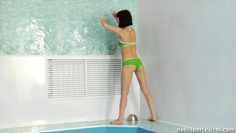 Кто бы мог подумать, что классические спортивные упражнения можно превратить в потрясающее эротическое шоу. Русские стройняшки не упускают случая, чтобы доставить удовольствие себе и окружающим их развратным кобелькам, желающим подглядеть за раскрепощенными телочками. Одна такая милашка после разминки энергично трет свою вагинальную дырочку, получая неземное блаженство, лежа на краю бассейна. Ее пальчики все смелее теребят клитор, приводя девушку в состояние эйфории.