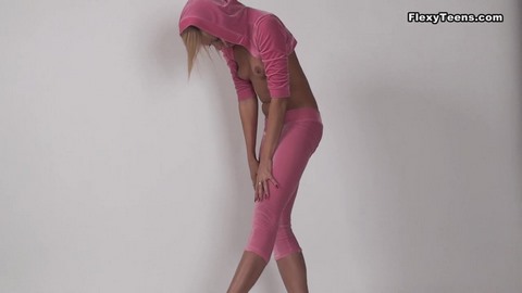 Спортивная цыпочка с маленькими сисечками продемонстрировала гибкость, когда только разминалась перед тренировкой по гимнастике. Чтобы ей было удобнее делать более сложные трюки, блондинка сняла облегающие леггинсы и кофту, под которой у нее тоже ничего не было. Гибкая русская гимнастка Зина выставила напоказ свои прелести и продолжила делать это в невероятных позах. Она выделывала удивительные вещи, а ее пилотка с татуировкой на лобке так и светилась перед камерой.