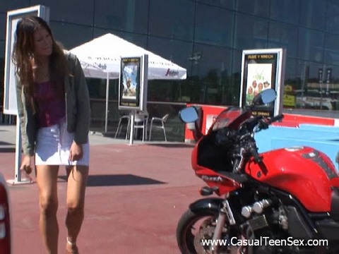 Байкер пригласил покататься свою милую подружку на мотоцикле и после того, как она согласилась, немного покатал ее по городу и когда заметил на ее лице дикое возбуждение от такой прогулки, решил свозить ее поглубже в лес, так как понимал, что она будет совершенно не против ему отдаться. Так и оказалось, привезя ее в лес, она без лишних вопросов оголила свои сисечки, а потом сделала ему шикарный минет, после чего молодая пара удобно устроилась на земле и после хорошей ебли в пизду парень кончил милашке на грудь.