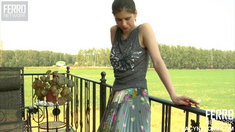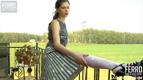 Молодая красотка в сексуальных белых чулках решила подышать свежим воздухом и вышла для этого на балкон. Посидев немного на в открытом пространстве под ветерком, она вдруг захотела испытать настоящее удовольствие и решила, что настало время для дрочки. Поначалу милашка просто ласкала руками свое нежное тело и киску через трусики, но это ей оказалось мало и тогда она достала из тайника свой огромный дилдо и сразу пустила его в действие, получив с помощью него то удовольствие, о котором она так долго думала.