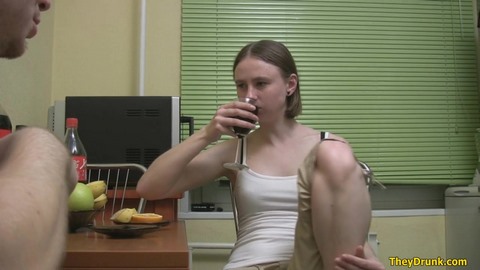 Мужик напоил свою подругу и выебал ее в пизду, кончив ей внутрь