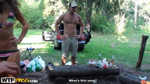 Раскрепощенные русские студенты собрались и толпой поехали отдыхать на природу. Выбрав себе идеальное место для отдыха, они остановились в лесу и одновременно недалеко от озера, где можно было поплавать. Разложив все свои вещи, они стали разжигать костер и что-то готовить. Пока парни занимались все этим ,девочки без стеснения стали переодеваться просто у них на глазах. Они примерили свои новенькие купальники, так что курские студенты полуголыми стали развлекаться на природе.