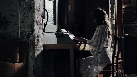 Сексуальная русская красотка в чулках в сеточку сидела на стуле и набирала текст на печатной машинке. Через какое-то время длительной работы она устала и захотела расслабиться. Для этого она не придумала ничего лучше, чем помастурбировать, пока рядом никого нет. Убедившись в том, что в ближайшее время к ней никто не зайдет, она разделась до гола и приступила к дрочке, с успехом доведя себя до оргазма через несколько минут и продолжив свою работу.
