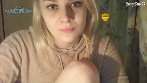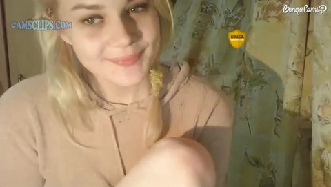 Милая блондиночка заскучала одна дома и, полазав в просторах интернета, нашла там сайт вебкама и решила попробовать заработать, показывая свое сексуальное тело всяким извращенцам на камеру. Для начала она просто под музыку показывала свою попочку в трусиках, но увидев, что на этом можно неплохо подзаработать, стала более раскрепощенной и оголила свои аккуратные сисечки и стала нежно ласкать их своими маленькими ручками, отчего сама чуть не возбудилась.