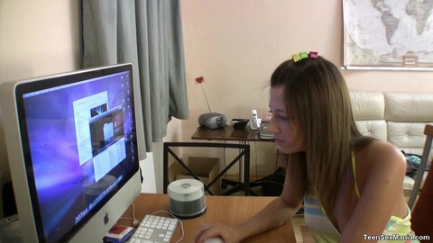 Миловидная русская девка пришла к другу домой, чтобы посмотреть фильм, а он уже настроил себе планов о том, что будет с ней трахаться. Он хотел уединиться с девкой, чтобы трахнуть ее, и это был самый подходящий момент. Она сидела за компом и выбирала интересный фильм, когда парень подошел к ней сзади и начал возбуждать. Мускулистый парень захотел и трахнул горячую подружку, так как и она была не против страстного соития. Девочка сделала ему приятно рабочим ртом, после чего уже подставила пилотку под твердый скользкий фаллос самца.
