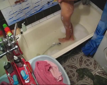 Любопытному кавалеру всегда хотелось узнать, чем так долго занимается в ванной комнате его любимая девушка. Воспользовавшись подходящим моментом, чувак установил там скрытую камеру и на следующий день любовался прекрасным зрелищем. Не догадываясь о проделке своего хахаля, стройная брюнетка как обычно закрылась в ванной и принялась мастурбировать. вымыв свое красивое тело, девка спустила воду и раздвинула ножки. Взяв страпон, телка принялась трахать им влажную пилотку и довела себя до финала.