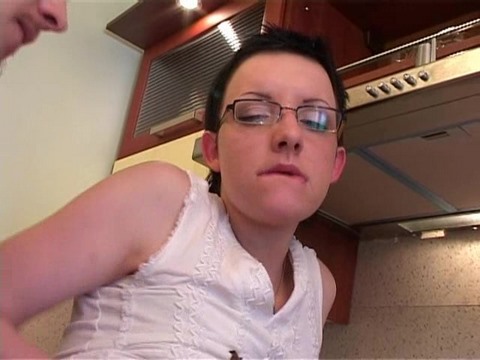 Придя с работы и застав подругу за приготовлением ужина, темпераментный мачо не стал ждать его, а принялся приставать к своей красотке. Желая побыстрее насладиться нежной плотью, чувак, даже не раздеваясь, посадил милашку на кухонный гарнитур и принялся интенсивно трахать. Страстная брюнетка, что бы сделать пареньку приятно, нежно отсосала его пенис и вновь оседлала его, стараясь получить максимум удовольствия. Слушая нежные стоны, кавалер довел милашку до яркого оргазма.