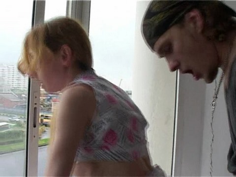 Белокурая стерва познакомилась на улице с чуваком и предложила ему прогуляться. Зайдя на стройку, активная парочка нашла открытый балкон и решили на нем перепихнуться. присев на корточки, длинноволосая самка расстегнула на приятеле ширинку и умелым минетом возбудила нового кавалера. Даже не раздеваясь, мачо засадил подружке и принялся ее активно трахать. Временами поддерживая хуй парнишки в боевом состоянии умелым отсосом, девка долго еблась с приятелем и дошла до яркого финала.