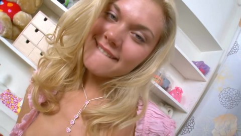 Не смотря на то, что девушке было уже 18 лет, блондинка всё еще очень любила поиграть в игрушки. Но так как юная леди давно созрела в половом плане, её киска тоже хотела игр. Конечно же, красавица в этом себе также не отказывала. Раздевшись, телочка сексуально покрутилась и взяла любимую вещь - оранжевый самотык. Им она стала трахать себя, не щадя бритой пизденки. Прикрепив фаллоимитатор на табурет, молодая девушка скакала на резиновом члене, представляя, что трахается с мужиком. Устав, девушка достала вибратор и полностью удовлетворила им свою похоть.