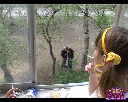 Две сексуально озабоченные студентки, стоя на балконе попивали шампанское и заметили в парке двух знакомых привлекательных парней. Сразу же загоревшись желанием потрахаться, телки пригласили их в гости. Разбившись по парам, шмары принялись снимать с кавалеров штаны, что бы добраться до их членов. Сделав пришедшим отличный минет, красавицы развели свои ножки и получили в пилотки внушительные хуи. Обслужив парней, телки и сами получили отличное удовольствие.