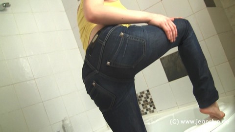 Похотливая студентка размышляла о том, как бы соблазнить своего соседа. Сегодня ее посетила гениальная идея о том, чтобы попросить парня снять на видео ее странные выходки. Красотка надела обтягивающие джинсы и направилась в душ. Она включила воду, оставаясь при этом полностью одетой. Идея оказалась не так уж и плоха, потому что, когда вода заструилась по ее бёдрам и ягодицам, джинсы на них намокли и стали выглядеть весьма сексуально и притягательно, что, вне сомнений, сильно возбудило парня, который снимал на камеру.