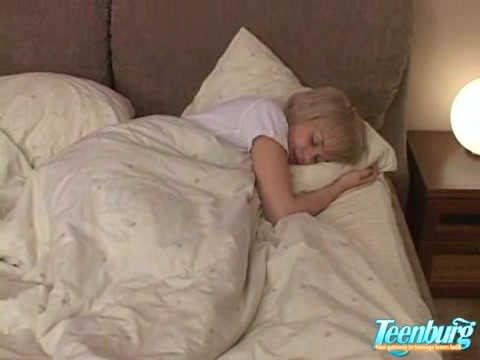 Андрея впустили в квартиру родители юной Лизы и ушли в магазин. Парень не растерялся и ринулся в комнату к спящей Лизе. Быстро пристроившись к девице, стал ее целовать и быстро раздевать. Опустился между ножек девки и задержался, смачивая бритую киску своей слюной и возбуждая клитор игрой язычком. Потом поменялись ролями, теперь блондинка сосет большой ствол друга, обхватывая горячими губами его головку.