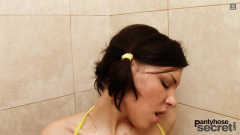 Девка в капроновом комбинезоне страпонит вагину