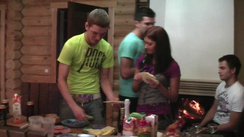 Как только выпал подходящий повод, активные парни решили устроить свою очередную шумную вечеринку и конечно же пригласили на нее раскрепощенных русских девчат. Собравшись за столом своей честной компанией, самцы специально подпаивали активных подруг, наливая им побольше спиртного. Дойдя до кондиции, милашки полностью раскрепостились и решили станцевать перед парнями зажигательный стриптиз. Включив мужику, самцы любовались на раздевающихся девчонок и постепенно возбуждались, представляя как займутся с ними жарким сексом.