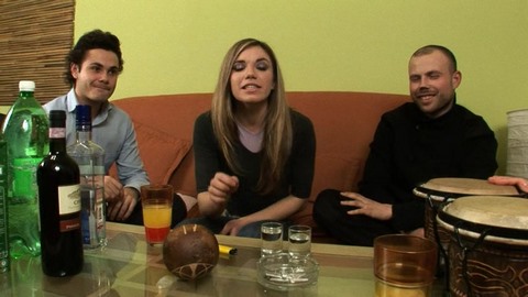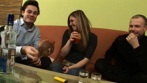 Двое парней прекрасно знают одну простую истину - пьяная баба пизде не хозяйка, поэтому приглашают в гости симпатичную деваху Лену, которую сразу же начинают напаивать водкой. Красотку развозит буквально за считанные минуты, а еще некоторое время спустя она уже находится практически в бессознательном состоянии, чем и пользуются похотливые самцы. Один из них снимает с крошки футболку, лаская ее небольшие сиськи. После самцы смелеют и вовсе раздевают бухую шкуру, укладывая на диван. Один паренек ебет суку пальцем, заставляя вяло постанывать.