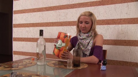 Парень уже давно бегает за симпатичной сучкой Ритой, но никак не может добиться ее расположения. Деваха никак не подпускает изголодавшегося по сексу самца, поэтому у него возникает хитрый план. Пригласив красотку к себе домой, паренек начинает ее активно напаивать. Блондинка налегает на водку, запивая соком и со временем сильно пьянеет. Через какое-то время речь напившейся соски становится совсем несвязной и встав из-за стола, телка чуть ли не падает на пол. Парниша понял, что настал момент истины.
